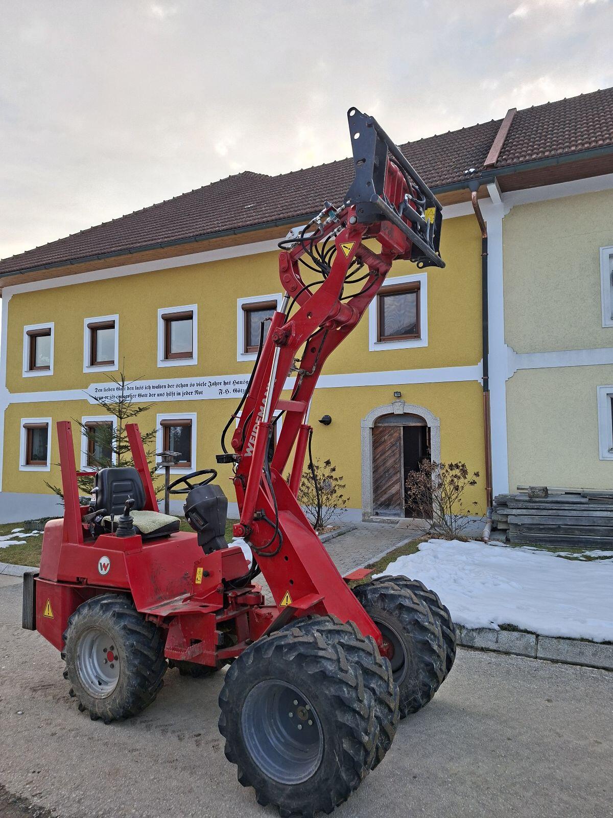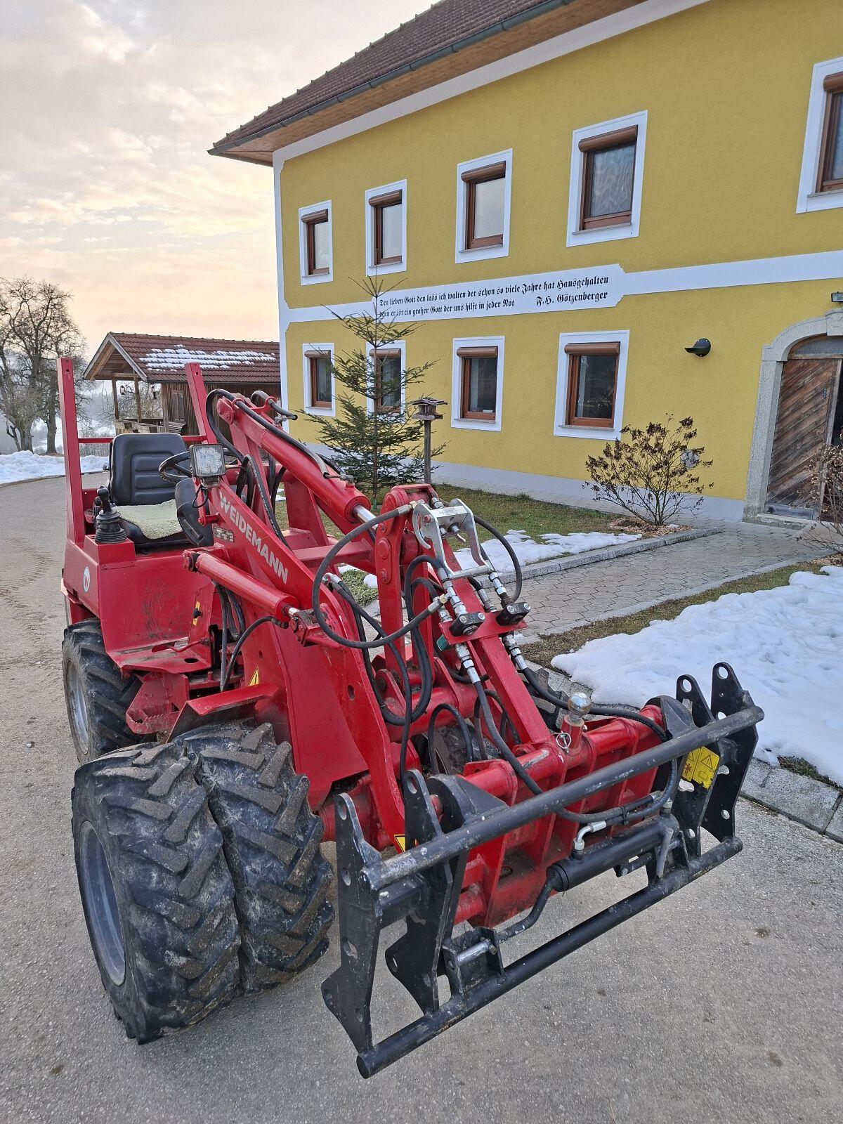 Verkaufe Weidemann 1240 P33, Bj. 2003 mit hv Aufnahme und Adapter auf Euro Aufnahme mit hydr. Verriegelung. Schwinge neu gebüchst, Mittelgelenke getauscht und alle Öle und Filter getauscht. Also technisch in Top Zustand. Heckgewicht und Zwillingsreifen gegen Aufpreis. Preis VB.