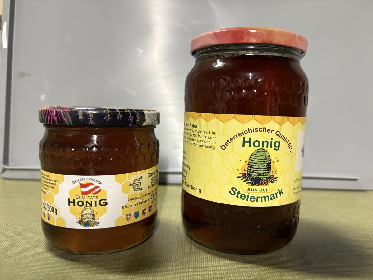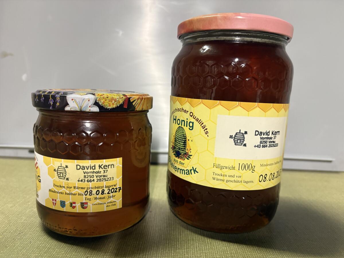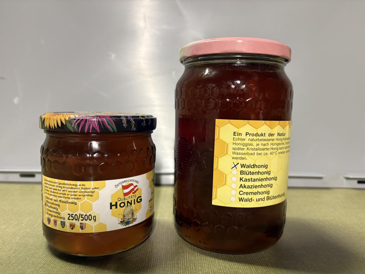 Natürlicher Waldhonig aus der Oststeiermark, Anfang August geschleudert, 0,5 kg € 8,-, 1 kg € 16,-, Versand auch möglich.