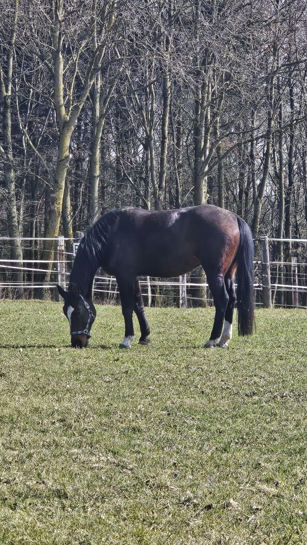 Verkaufe schweren Herzens meine schwarzbraune Stute 20 Jahre alt, 1,66 cm Stockmass, geritten und gefahren, geht alleine vom Pferdestall weg zum Ausreiten. An guten Platz abzugeben, wegen Platzmangel, da zwei neue Kutschenpferde gekauft wurden. Man kann ganz normal Ausreiten gehen nur bei starkem Galopp hört man ein Kehlkopfpfeifen, aber sonst keine Einschränkung. ⁹