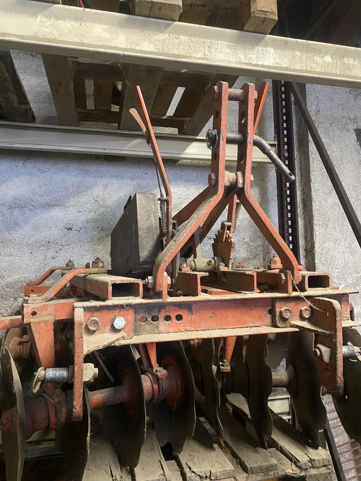 X-Scheibenegge mit geschätzt 1,4 m AB. 4 Scheibenwellen, Elemente mit je 4 Scheiben inkl. Abstreifer. Vorne arbeitet sie nach außen und in der zweiten Reihe arbeitet sie nach innen. Winkel vorne und hinten ist separat manuell verstellbar. Linkes vorderes Element muss gewartet werden, läuft nicht leichtgängig (wahrscheinlich Lager tauschen). Wird verkauft, weil nicht mehr in Verwendung. Angedrahtete Gewichter sind NICHT dabei. Die Egge hat auch keine Walze.