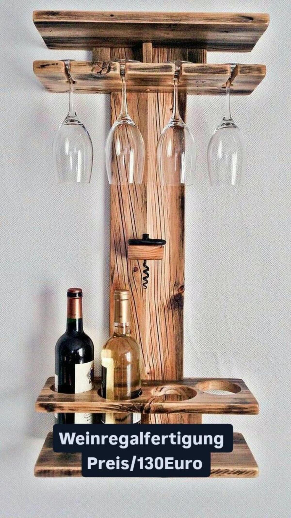 Idee, Entwurf, Planung, Fertigung, Montage von Weinregalen Maß: 120cm x 20cm x 50cm. Malerei - Lackiererei. Jausenbrettererzeugung mit Brandmalerei, Schleiferei, Laubsägearbeiten. Jausenbretter € 8,- mit Brandmalerei. Jausenbretterständer € 30,-. Echte Handarbeit aus Österreich.