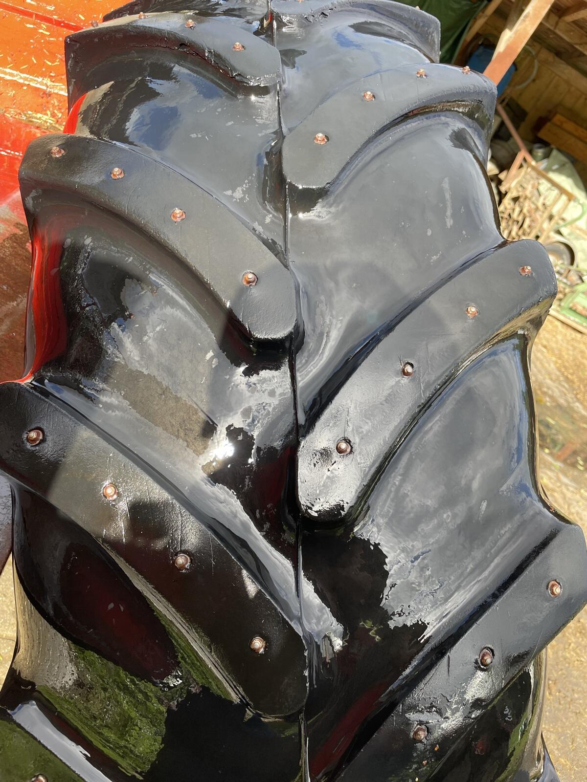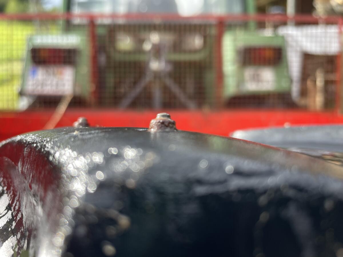 Reifen bestückt mit 160 Stk. BEST GRIP Schraubspikes, funktionieren perfekt hinterm Schneepflug, am besten auf Asphalt/gefrorenem Untergrund. Enormer Sicherheitsgewinn, massive Steigerung des Fahrkomforts, Verschleißminderung für Reifen und Ketten. Ersatzspikes und Schraubwerkzeug vorhanden. Felgen passen für Fendt, Steyr.