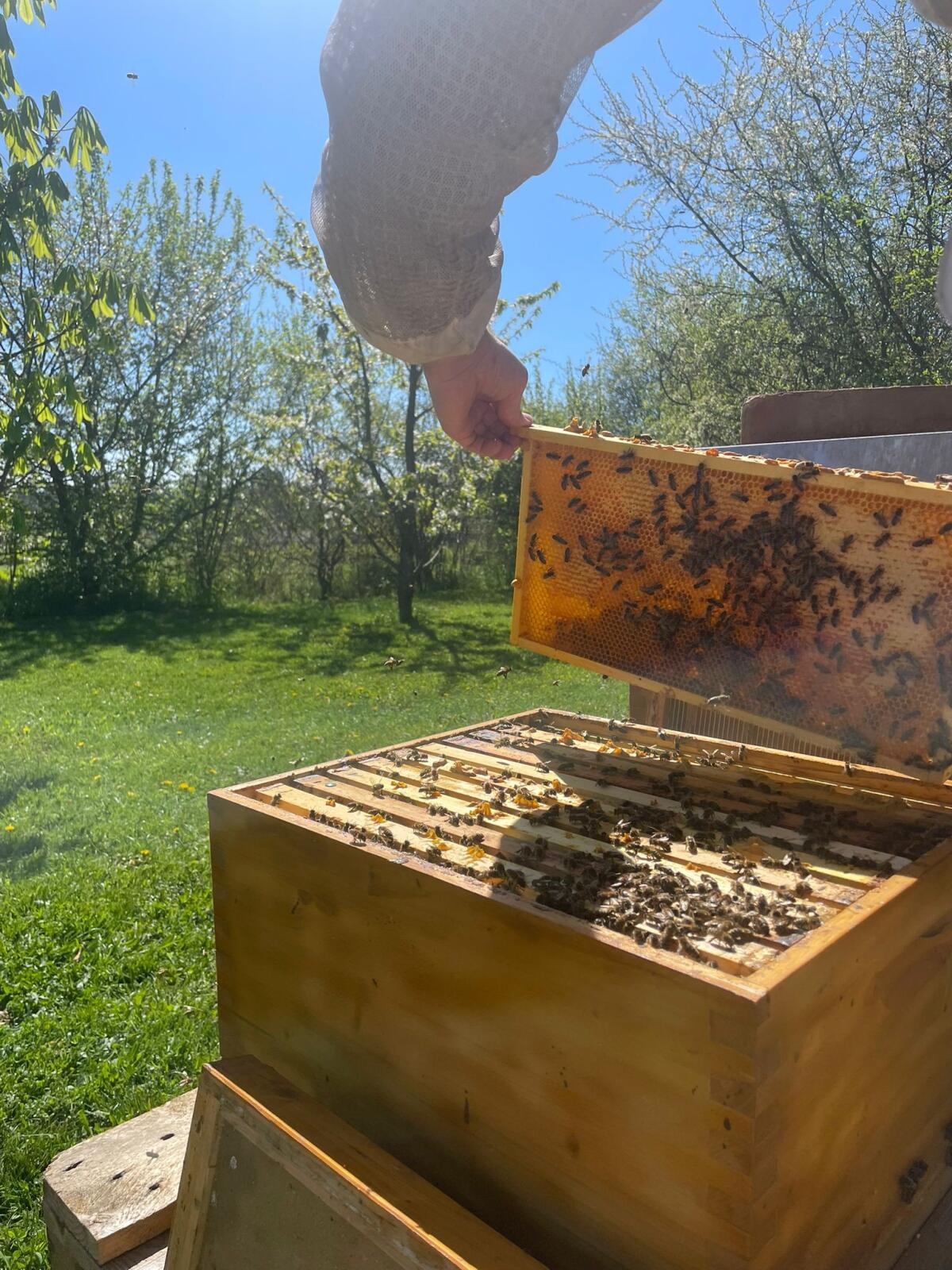 5 Bienenvölker im Zandermaß – AFB untersucht – aus eigenem Wachskreislauf Bienenherkunft – bewährte Landrasse: Geimkert wird mit einer robusten Landrasse. Fokus liegt auf Vitalität, Anpassungsfähigkeit & guter Honigleistung unter regionalen Bedingungen. Es handelt sich nicht um eine speziell auf extreme Sanftmut selektierte Linie, sondern um widerstandsfähige, arbeitstüchtige Bienen mit stabilem Brutverhalten & guter Entwicklungskraft, denen auch strenge Winter im Waldviertel nichts ausmachen. Alle Völker sitzen auf frischen Brutwaben (Alter <1Jahr) Preis: Der Preis bezieht sich auf 10 Waben (Bienen, Königin und Bienenbrut auf Rähmchen) pro Volk bei SELBSABHOLUNG