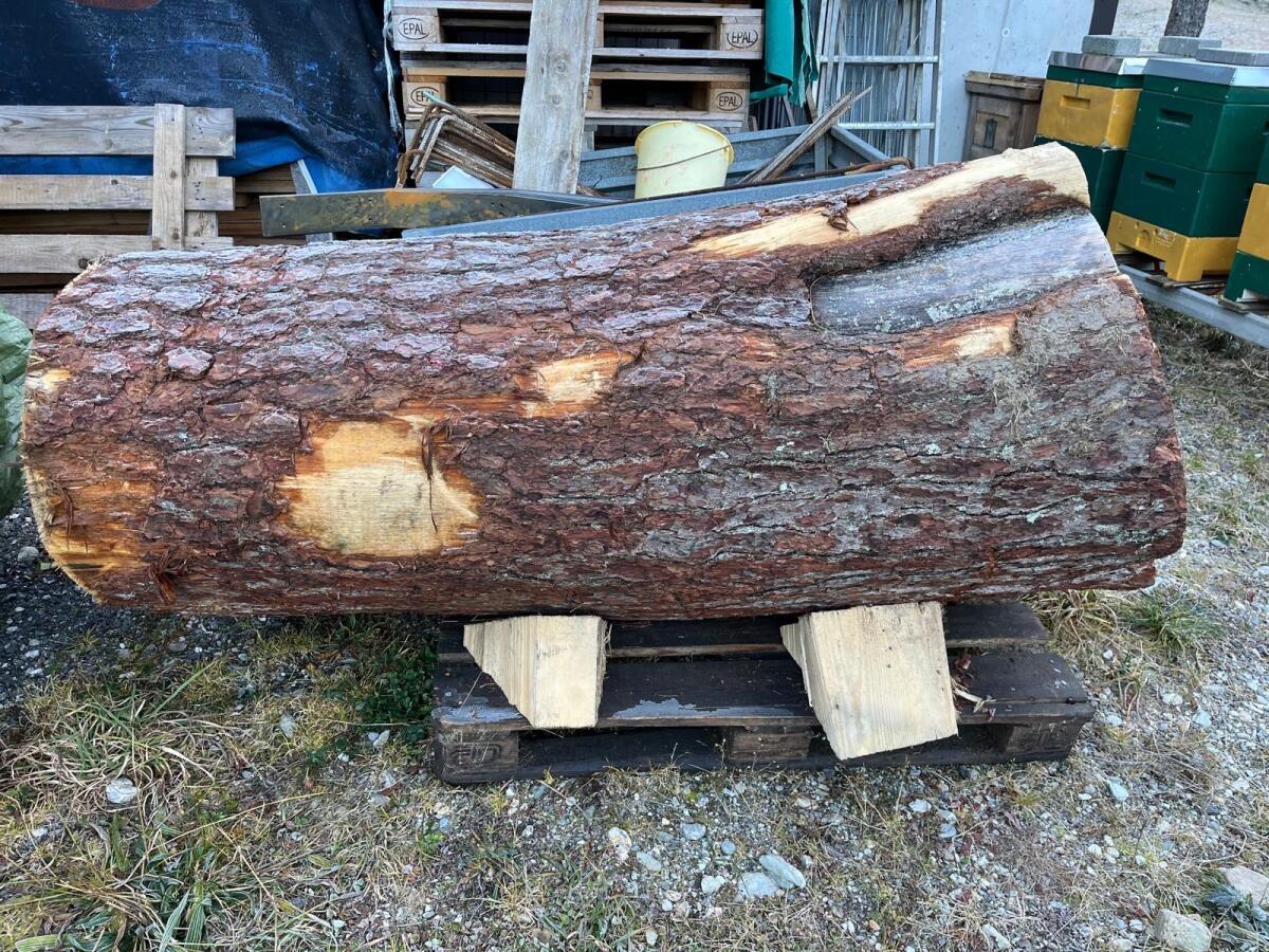 Zirbenholz Stamm, ca. 1,7 m lang, ca. 80 cm Dm. Die kleineren Stk. sind dabei.