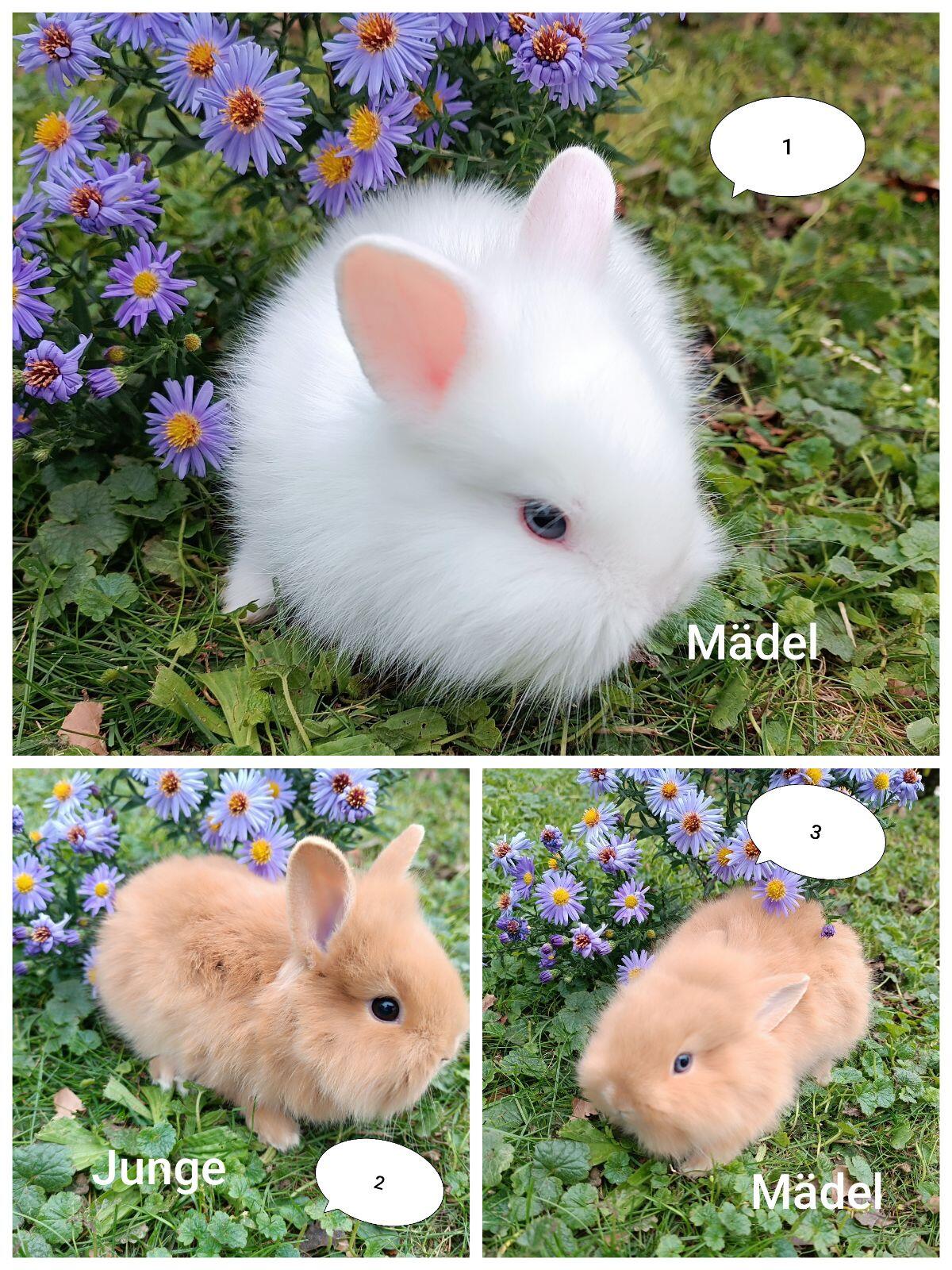 Süße Zwergkaninchen dürfen bald ausziehen. Bei Abgabe sind sie in der 7. Lebenswoche (ab 15.10.2025). Jungs je € 25,-, Mädels je € 30,-. Beste Haltungsvariante ist ein Paar, (Junge mit 12 Wochen kastrieren lassen). Können bereits gerne reserviert werden! Nähe Gleisdorf Autobahn A2.