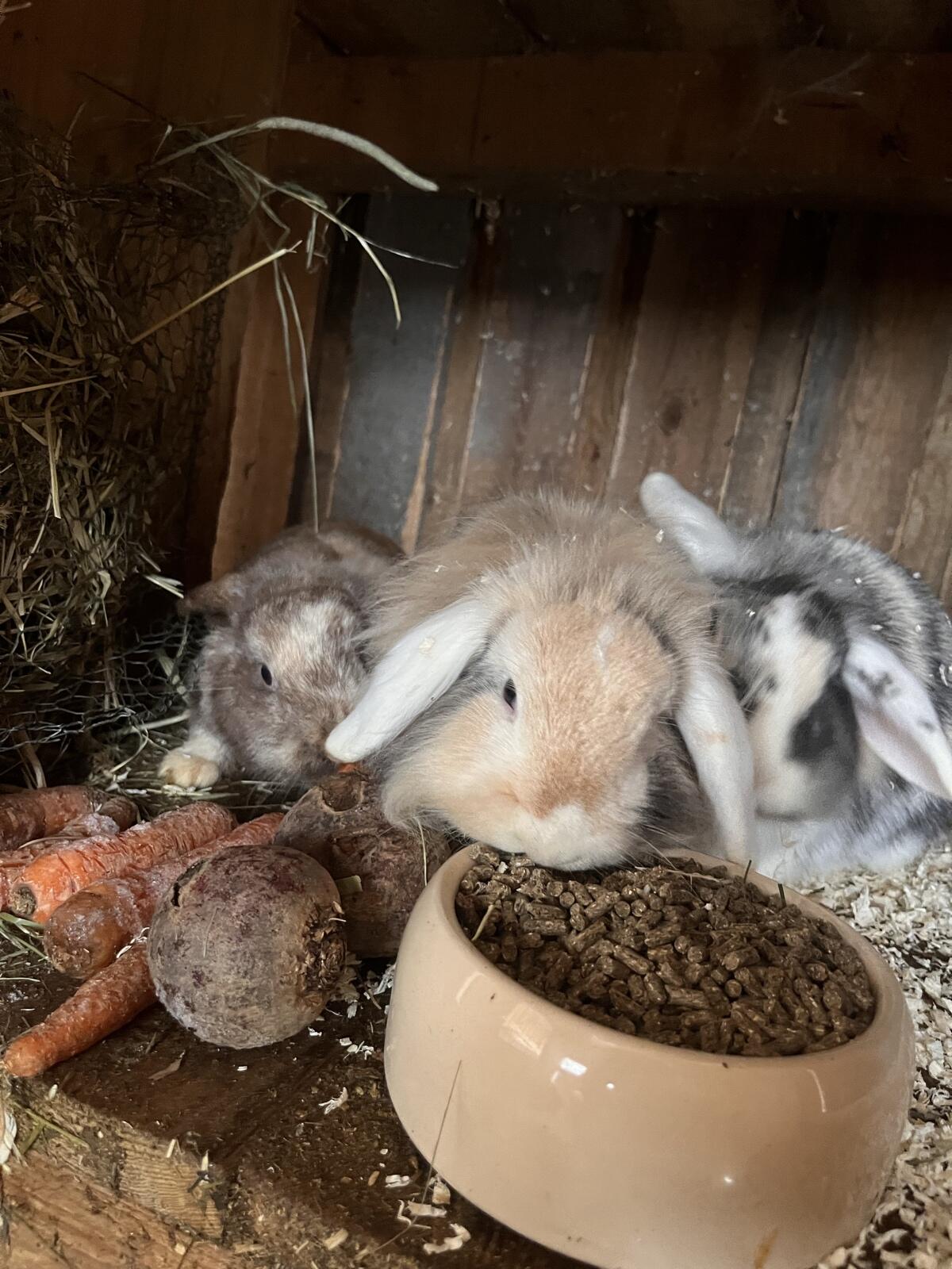 Kaninchenkinder suchen ab 30.03. ein neues Zuhause. Die kleinen Osterhasen werden draußen gehalten und leben in Gruppenhaltung (auch die Elterntiere). Ein einjähriger Rammler sucht ebenfalls noch ein Zuhause. Preis: € 15,-.