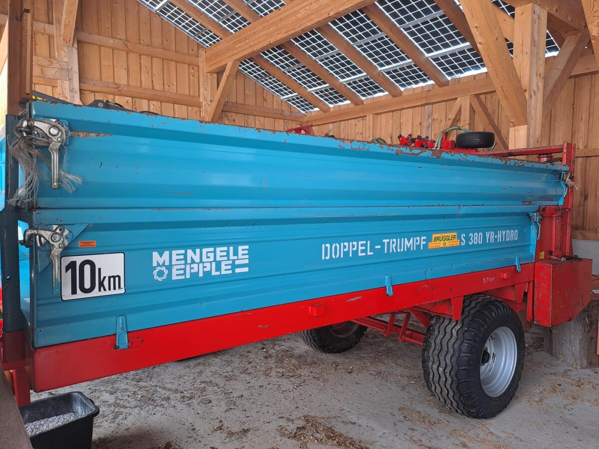 Miststreuer Marke Mengele-Epple Doppel-Trumpf S 480 VR, Einachser, Seilzugbremse, inkl. Beleuchtung, mit erhöhten Bordwänden und Schüttgutaufbau (nicht auf den Fotos