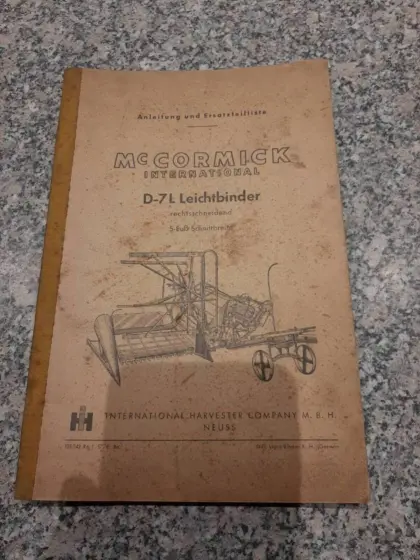 Bedienungsanleitung McCormick D-7L Leichtbinder inkl. Versand für € 22, -, inkl. Versand nach Österreich € 25, -. Erntetechnik Ackerbau Sonstige Erntegeräte Ackerbau