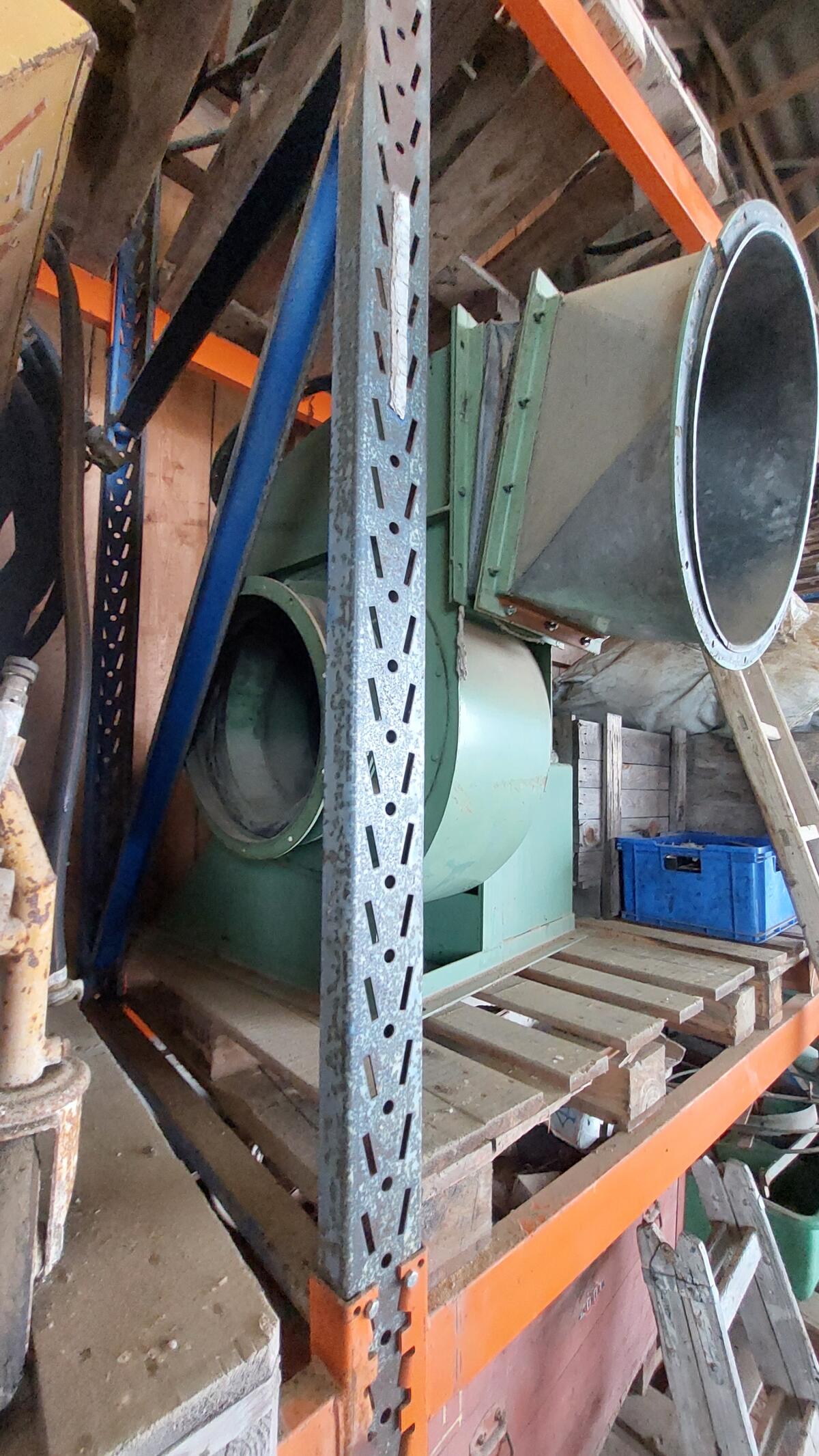 Kirchner Heugebläse Flottweg mit Motor 7, 5 kW, Rohren, Schellen und Auswurf. Förderanlagen Gebläse