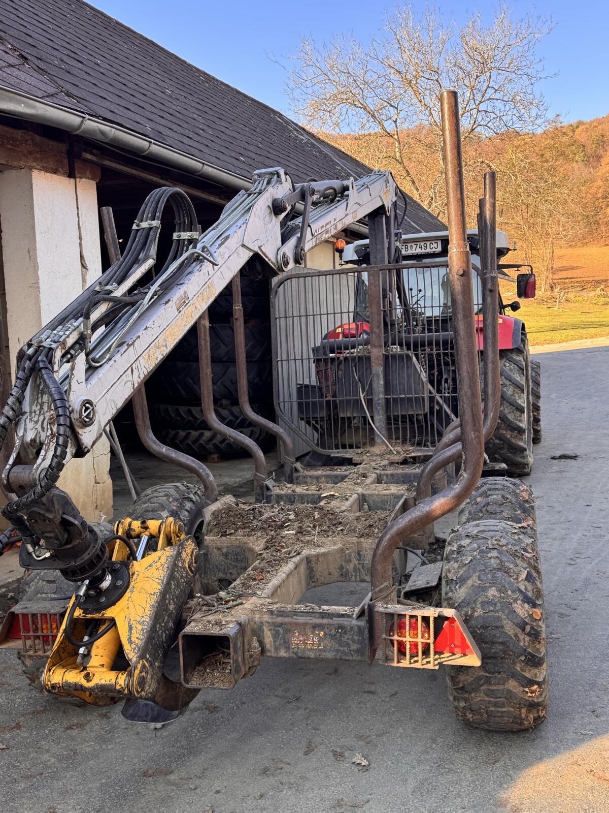 Verkaufe Rückewagen BMF 10T2 Pro mit 750-Kran, Eigenölversorgung, Doppelrahmen, Kranreichweite 7, 50 m, Pro-Rungen, hydraulische 4-Rad-Bremse, massive Astwanne, Steue