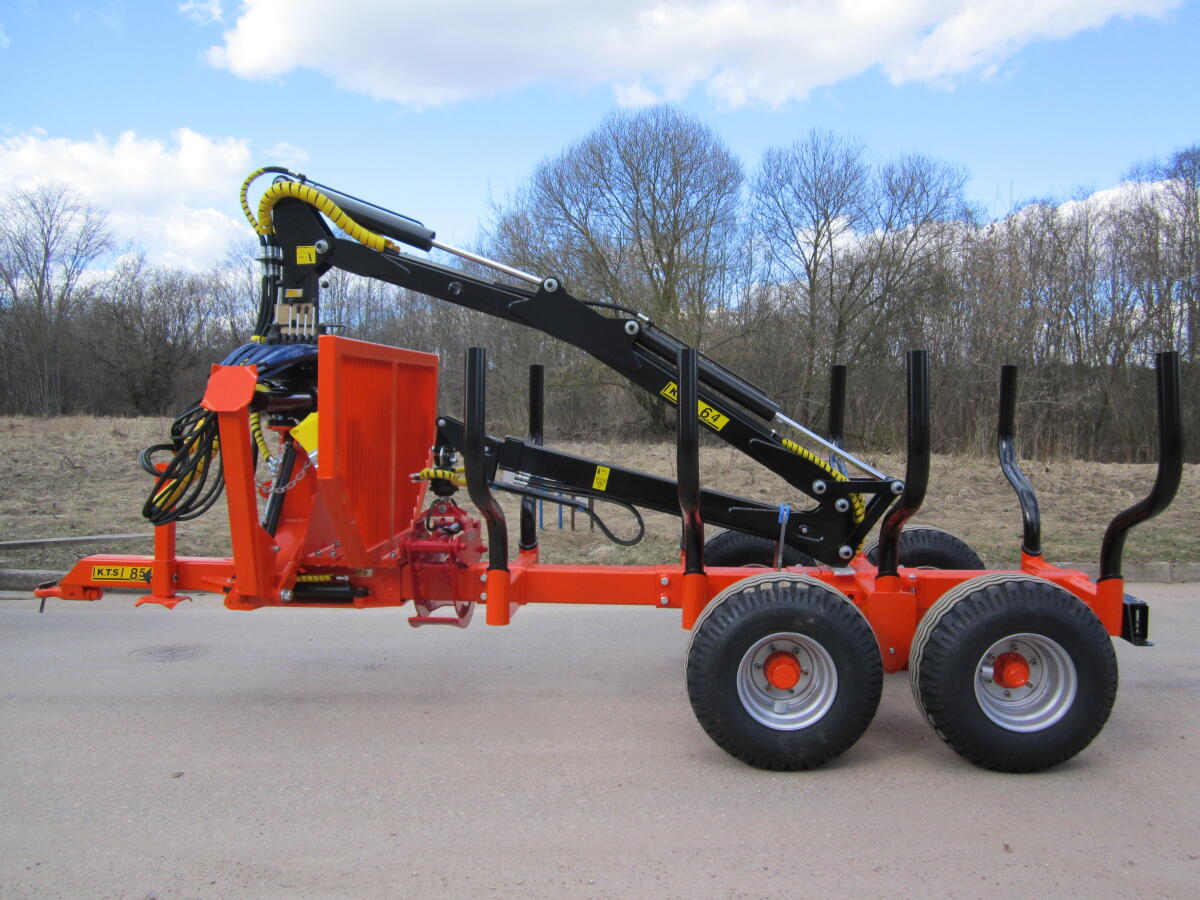 Forstanhänger EA50, Kran ca. 5, 2 m inkl. Holzgreifer und Rotator, Einachs-Holzanhänger 5 t, hydr. Bremse, 3 Rungenpaare mit 6 Rungen (nicht verstellbar), inkl. stark