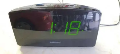 PHILIPS AJ3400 Radiowecker, UKW, Schlummerfunktion mit zwei Weckzeiten, Netz- oder Batteriebetrieb inkl. Netzteil, mit großem Display, Wecker wahlweise mit Musik ode