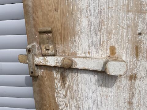 Alte Speicher- oder Kellertür mit originellem Holzschloss. Außenmaße B 102 H 200 cm. Haus und Garten Fenster und Türen