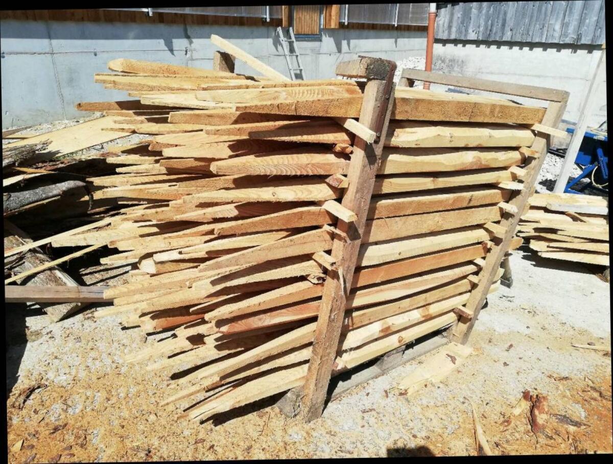 Aus feinst gewachsener Gebirgslärche, ca. 1, 7 oder 2 m lang, gespitzt, entrindet, andere Längen auf Anfrage, zurzeit auch runde und eckige vorhanden. Lärchenstangen