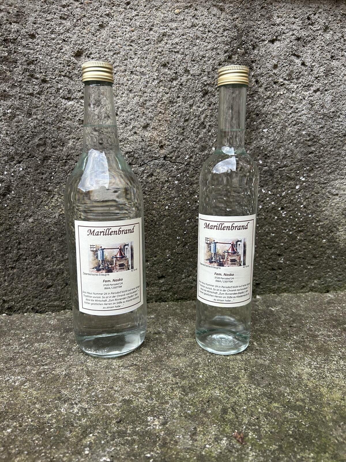 Verkaufe selbst gemachten hochwertigen Marillenbrand. 100% reife aromatische Marillen aus eigenem Anbau. Verfügbar in verschiedenen Mengen, 1 l bis 25 l. 40% oder 43