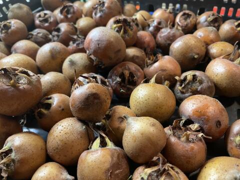 Mispelfrüchte zu verkaufen. Alte heimische Obstsorte, sehr Vitamin C reich. 2 €/kg. Hofladen Obst