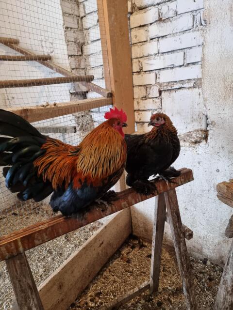 Hallo, ich vergebe einen jungen Brahma Hahn von 2025 mit Brahma Henne von 2024 im Farbschlag Mottled (Schwarz-Weiß gescheckt). Beide sind relativ brav und ruhig, sin