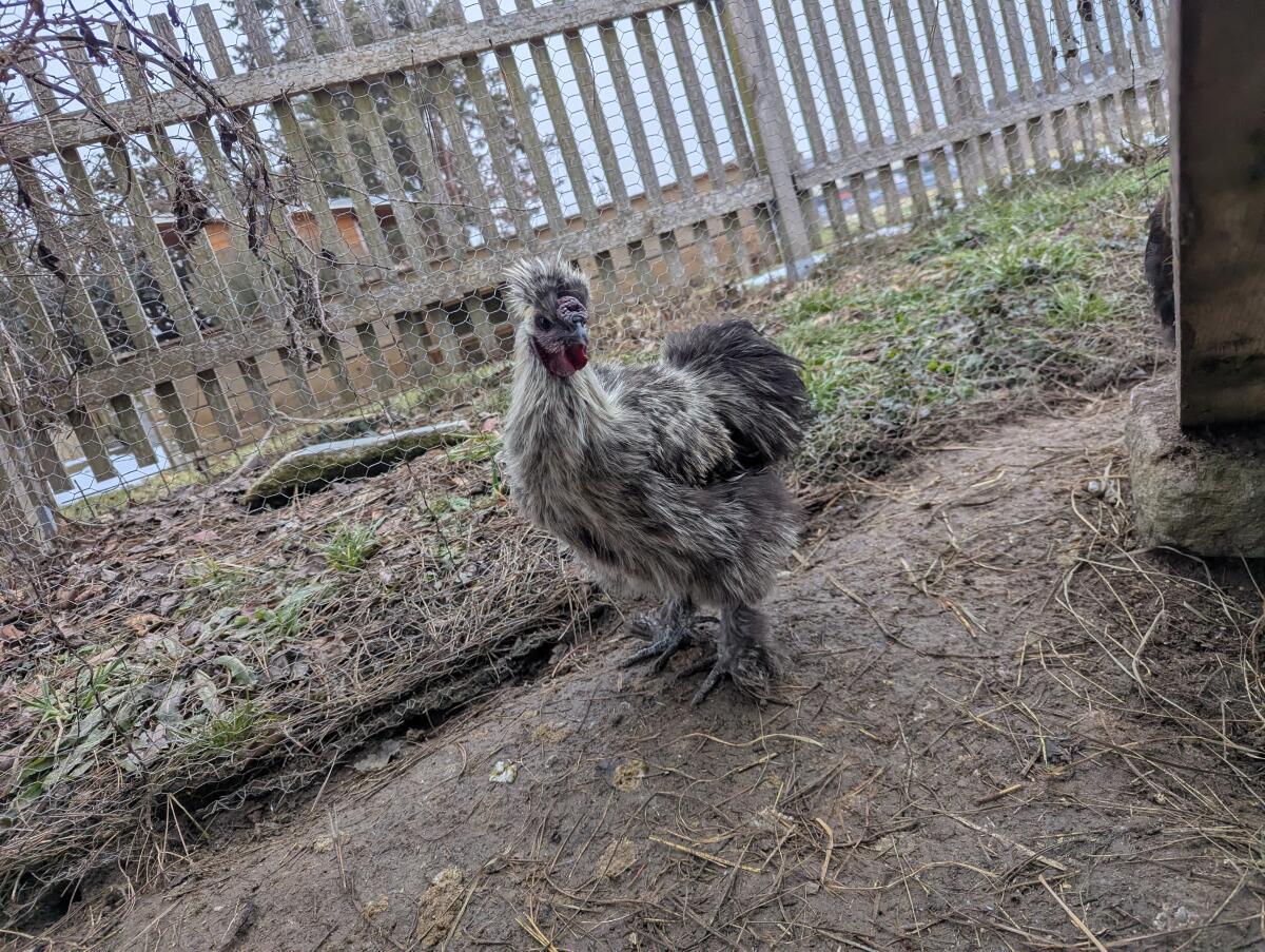 Verkaufe 1 Hahn, Frühjahr 2025, grau bunt gemischt. Ist sehr zahm und an Kinder gewöhnt. Standort Münzkirchen, Bezirk Schärding. Hühner Seidenhühner