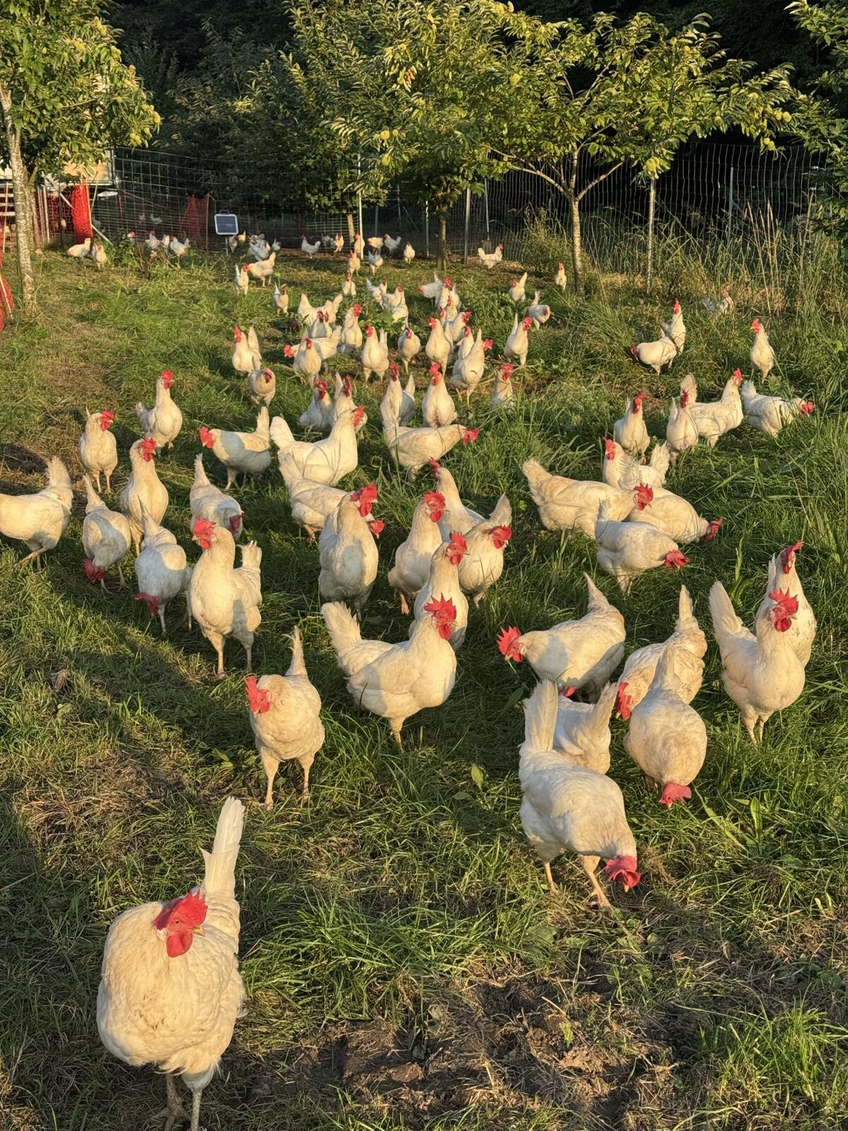 Hühner im Alter von etwas über 1, 5 Jahren abzugeben. Kleinste Abnahmemenge 20 Stk. Rasse Sandy. Die Hühner werden in einem modernen mobilen Legehennenstall gehalten