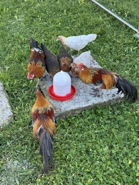 5 Hähne zu verschenken, geboren im März 2025. Hühner Hähne