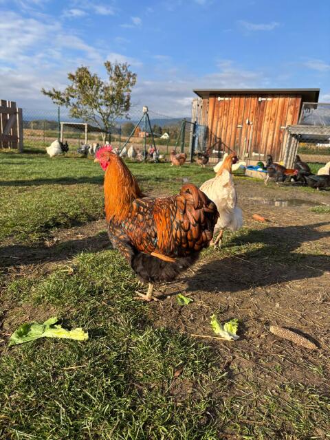 Junghahn Pepi (geboren mittels Naturbrut im Juni 2025) sucht seine eigene Hühnerschar! Habe bereits einen Althahn, mit dem das Zusammenleben grundsätzlich passt, suc
