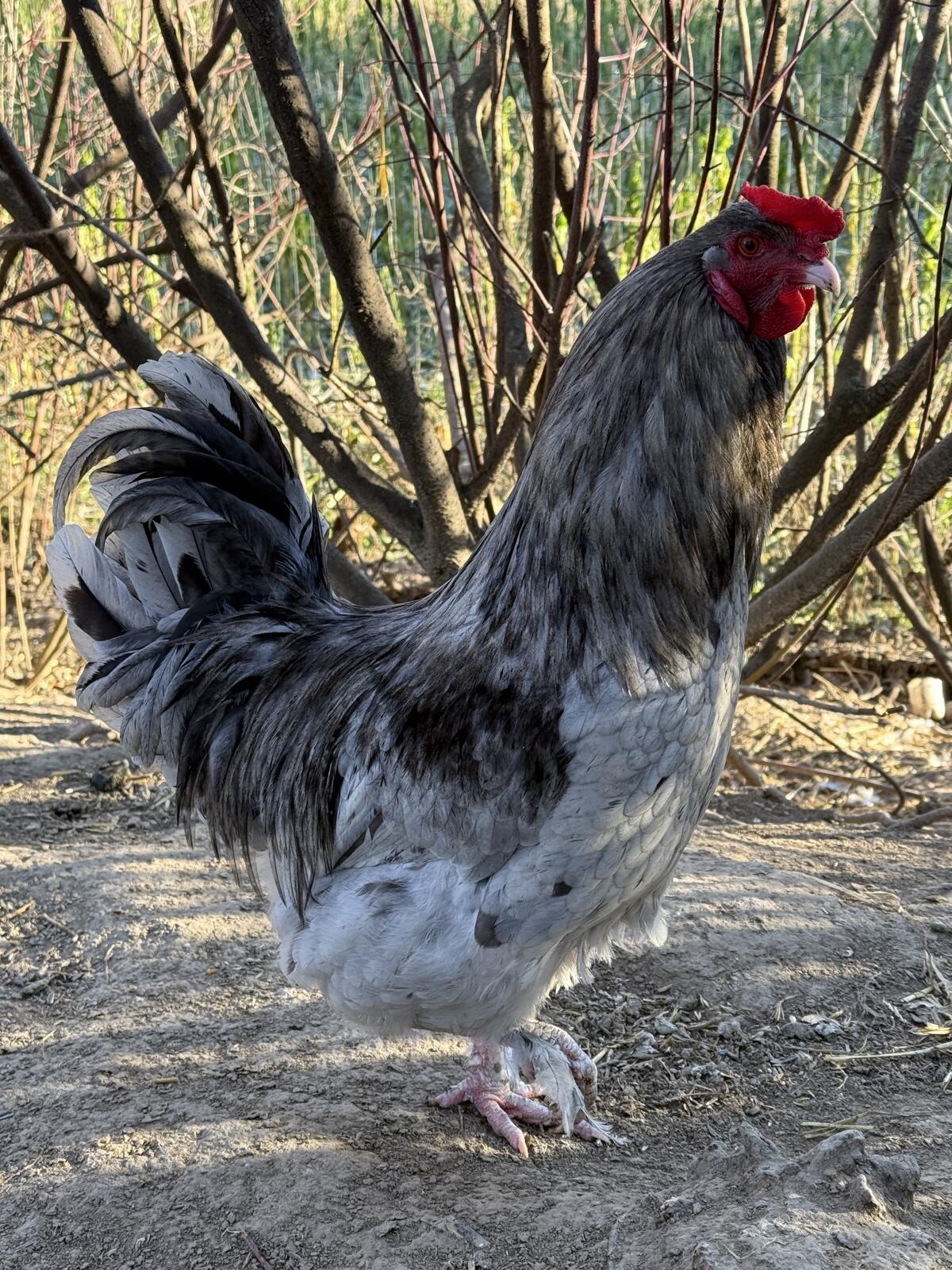 Aus Naturbrut geschlüpfter Hahn aus Sommer 2025. Hat im Dezember begonnen zu krähen und ist leider für unseren Schlaf nicht kompatibel. Freuen uns über eine gute neu