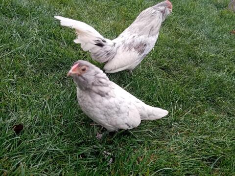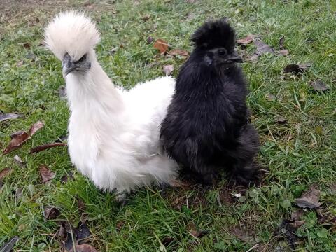 Vergeben unser Seidenhühner Pärchen. Sie sind zutraulich und ca. 6 Monate alt. Hahn € 15, - und Henne € 20, -. Hühner Seidenhühner