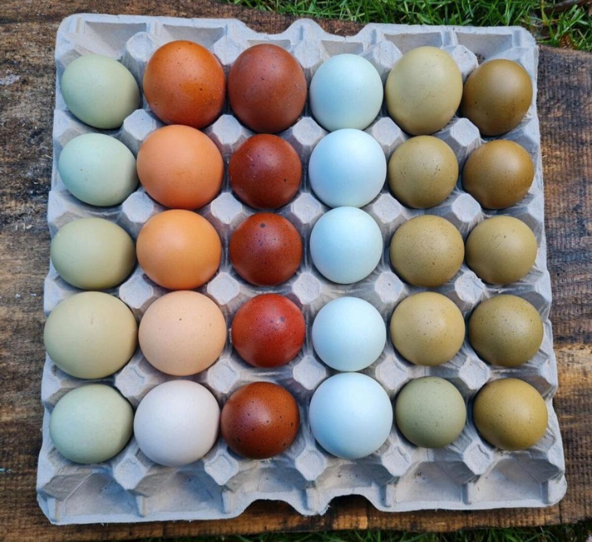 Ich biete Bruteier meiner Buntleger an. Es schlüpfen durch die gezielte Verpaarung aus den Bruteiern Olivleger, Blauleger, Rotleger und Grünleger. Preis pro Ei: € 2,