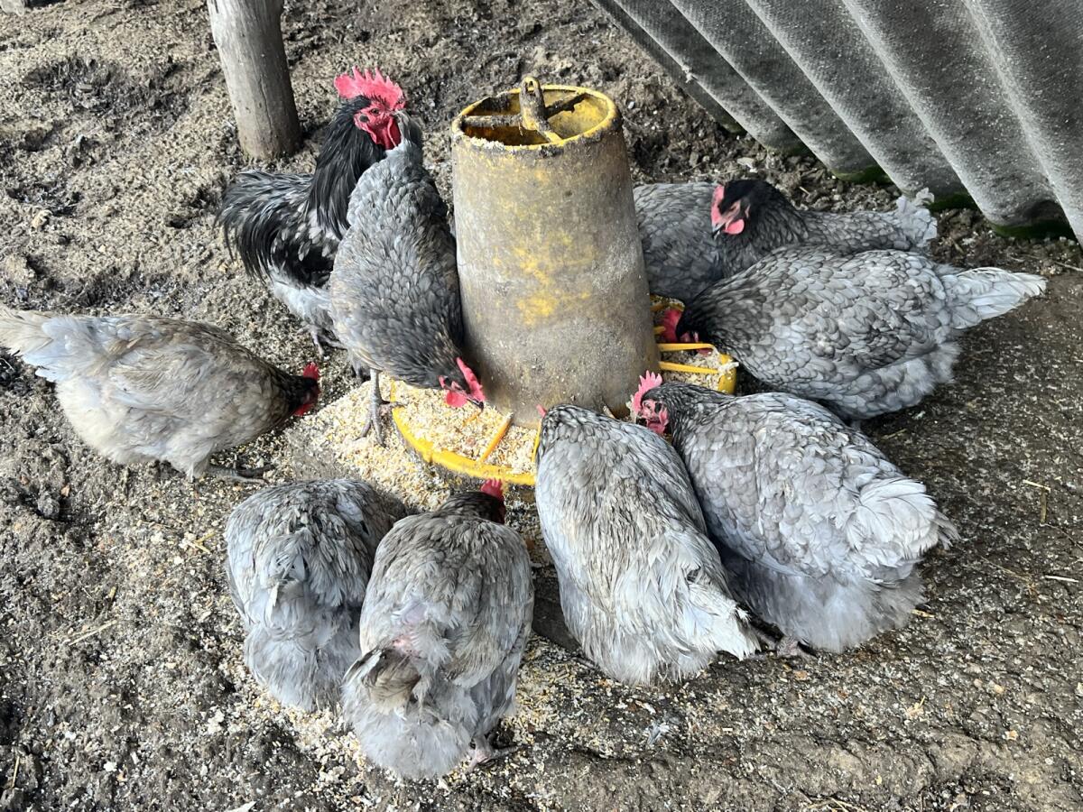 Futter: Hühner sind Allesfresser mit Vorliebe für Körner, Insekten, Gräser und Küchenreste.