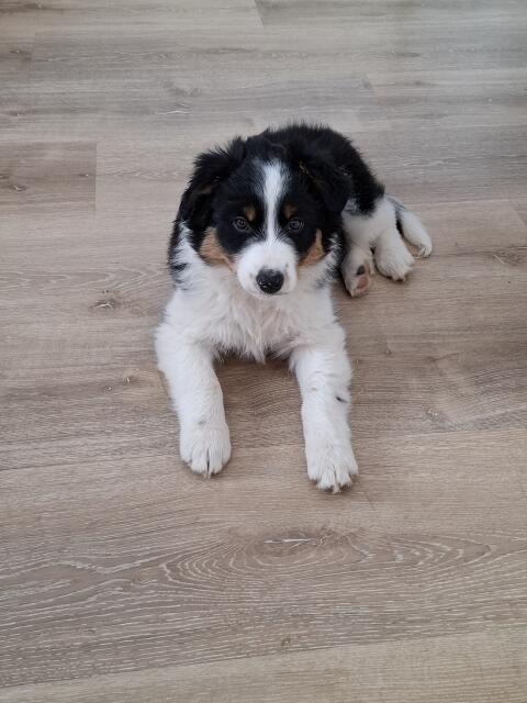 Dieses süße Mädchen sucht noch ein schönes Zuhause.Mit großen Garten oder auf einrn Reiter/Bauernhof.Mama ist ein Border collie und der Papa ein Australien Shephe