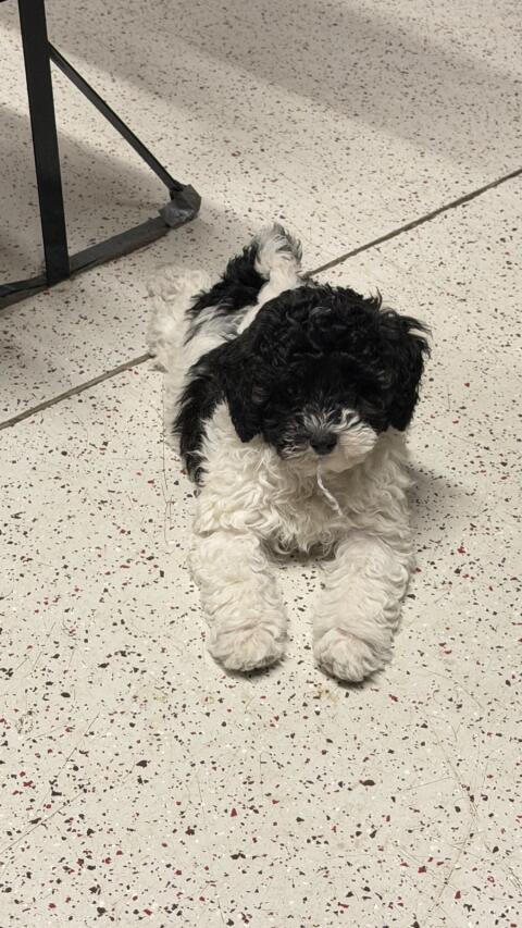 Einmalige Färbungen bei Bichonpoo-Hündinnen wie Abb. sind noch frei. Wer sich für einen bisschen ausgefalleneren kleinen Begleiter oder Familienhund interessiert, is