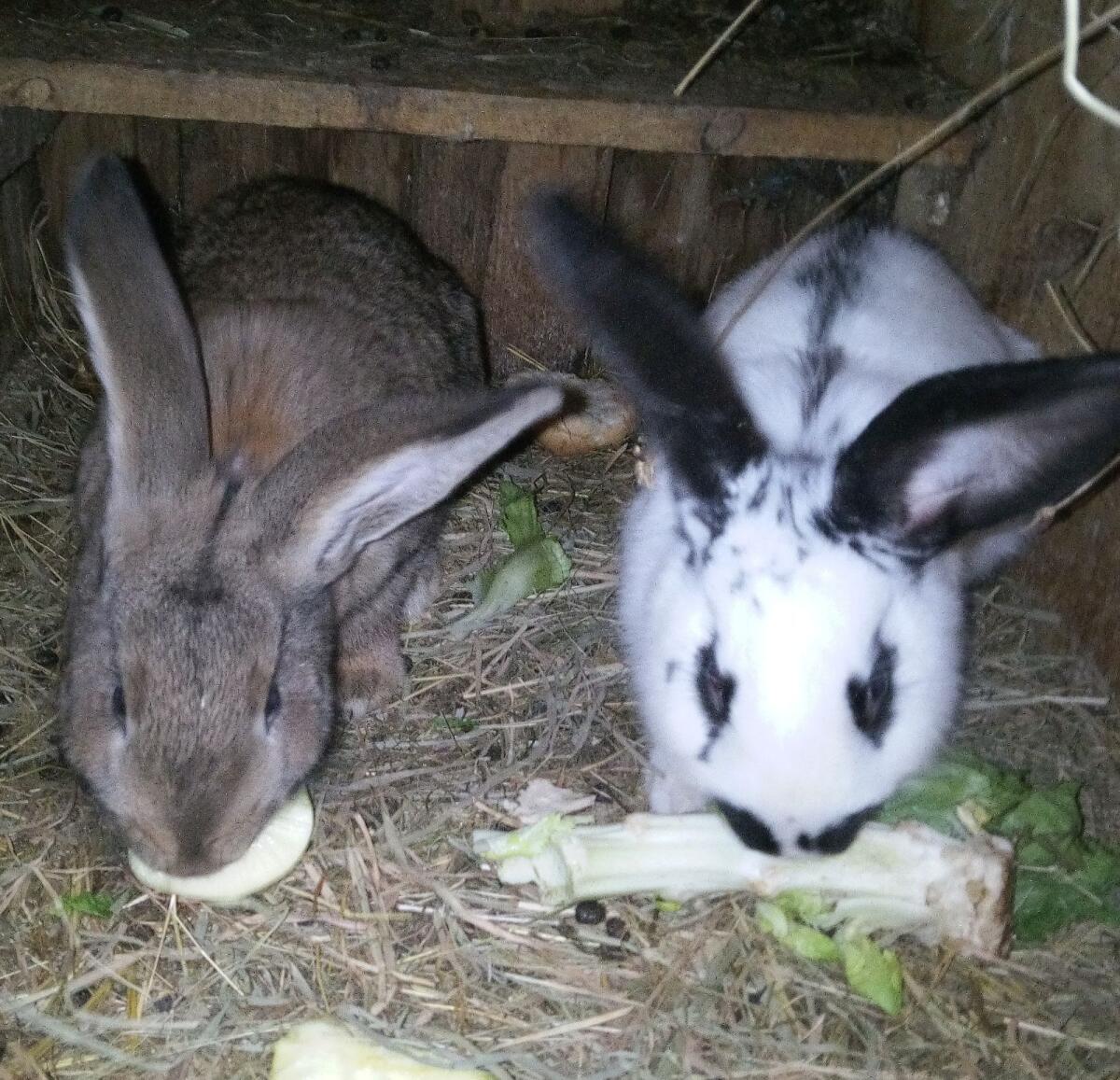 Zwei junge Fleischhasen, Rammler. Sind 1 1/2 Jahr alt. Kaninchen / Hasen Fleischhasen