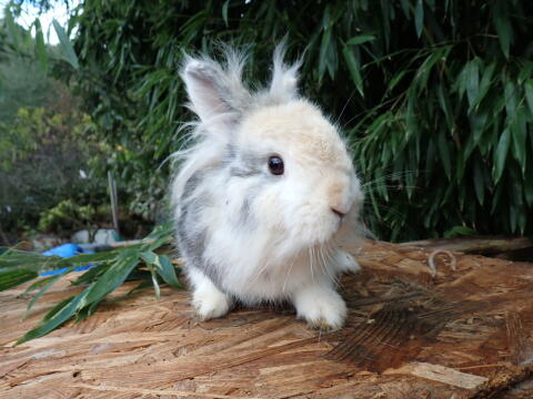 Wir suchen ein neues Zuhause für unsere Löwenkopf-Kaninchen. Ihr Fell ist weiß bis braun gefleckt. Sie sind sehr zutraulich, da sich immer sehr liebevoll um sie gekü