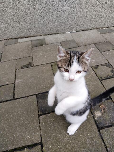 Diese Katzenkinder suchen ein liebevolles neues Zuhause, sie sind Anfang April geboren und sehr zutraulich. Der weiße und der schwarz-weiße sind männlich, die beiden