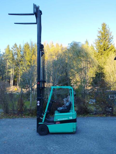 Verkaufe einen gebrauchten Mitsubishi Stapler FB16KT, Bj. 2002, Gewicht 2.510 kg, AMP-Stunden 600, Spannung 48 V, Hubhöhe 5.490 mm (ca. 4, 5 m), Triplexmast, Zusatzhy