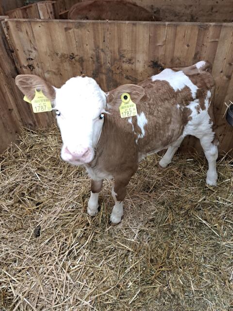 Verkaufe Fleckvieh Bio Zuchtstier Willi 4 Wochen alt. Mutter: Walli 37 l 4, 45 Fett 3, 23 Eiweiß. Vater: Megerstar Pp*. Rindermarkt Fleckvieh Stiere
