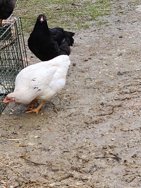 4 Hennen zu abgeben, fangen gerade an zu legen. Rasse bunter Mix. Farben: ein weißes, ein schwarzes und zwei goldbraun schwarze. Hühner Legehennen
