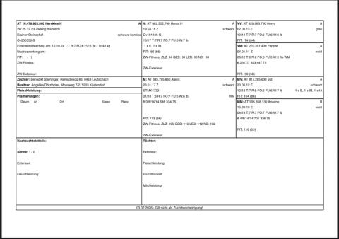 Wir verkaufen unseren gekörten Krainer Steinschaf Zuchtwidder Herakles aus HB Betrieb. Geburtsdatum 25.12.2023. Farbe Schwarz (wird grau), sehr homogene und feine Wo