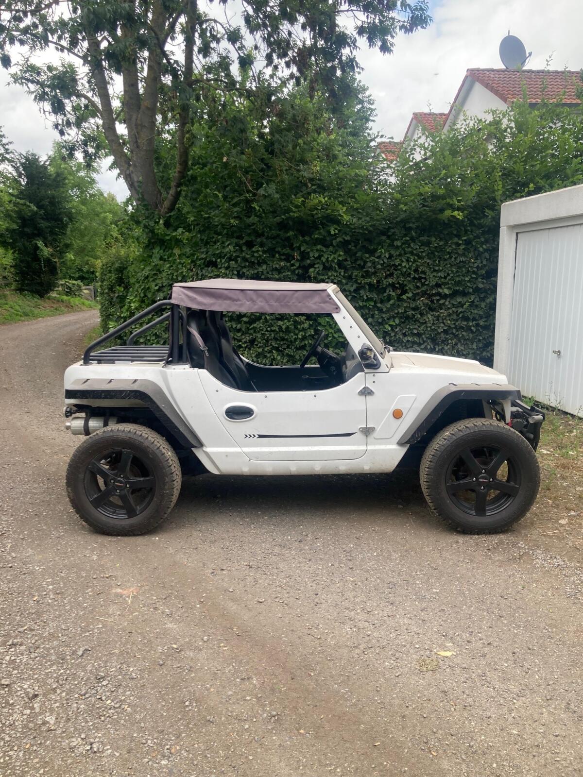 Verkaufe altersbedingt mein wunderschönes Mini Jeep- Quadix 2x4 mit LoF-Zulassung, steuerfrei, Tachostand 2.970 km, Handschaltung, Farbe Weiß, Stoffverdeck schwarz,
