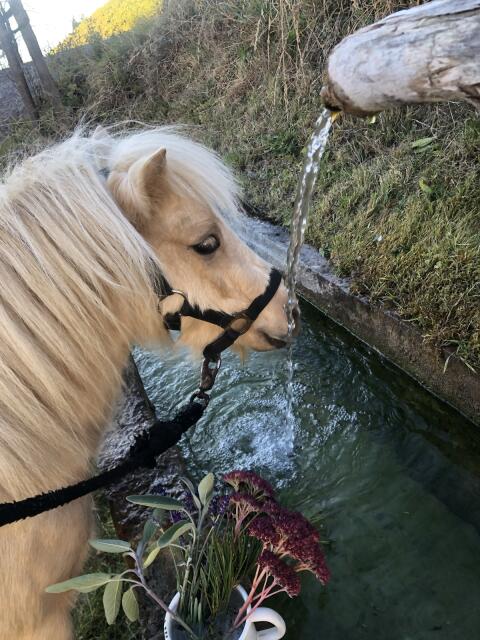 Miniaturpferd, geboren 2023Striegeln, Hufe auskratzen und Führen funktionieren zuverlässig.Auch gute Longearbeit kennt sie bereits und macht aufmerksam mit.Sie i