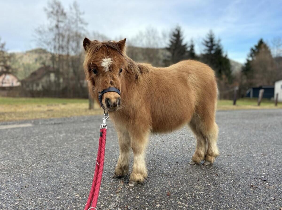 Unsere geliebte Minishettystute sucht eine neue Aufgabe. Sie ist 5 Jahre alt und liebt Kinder, kennt Hunde, Traktor usw., das ist alles kein Problem. Sie hat volles