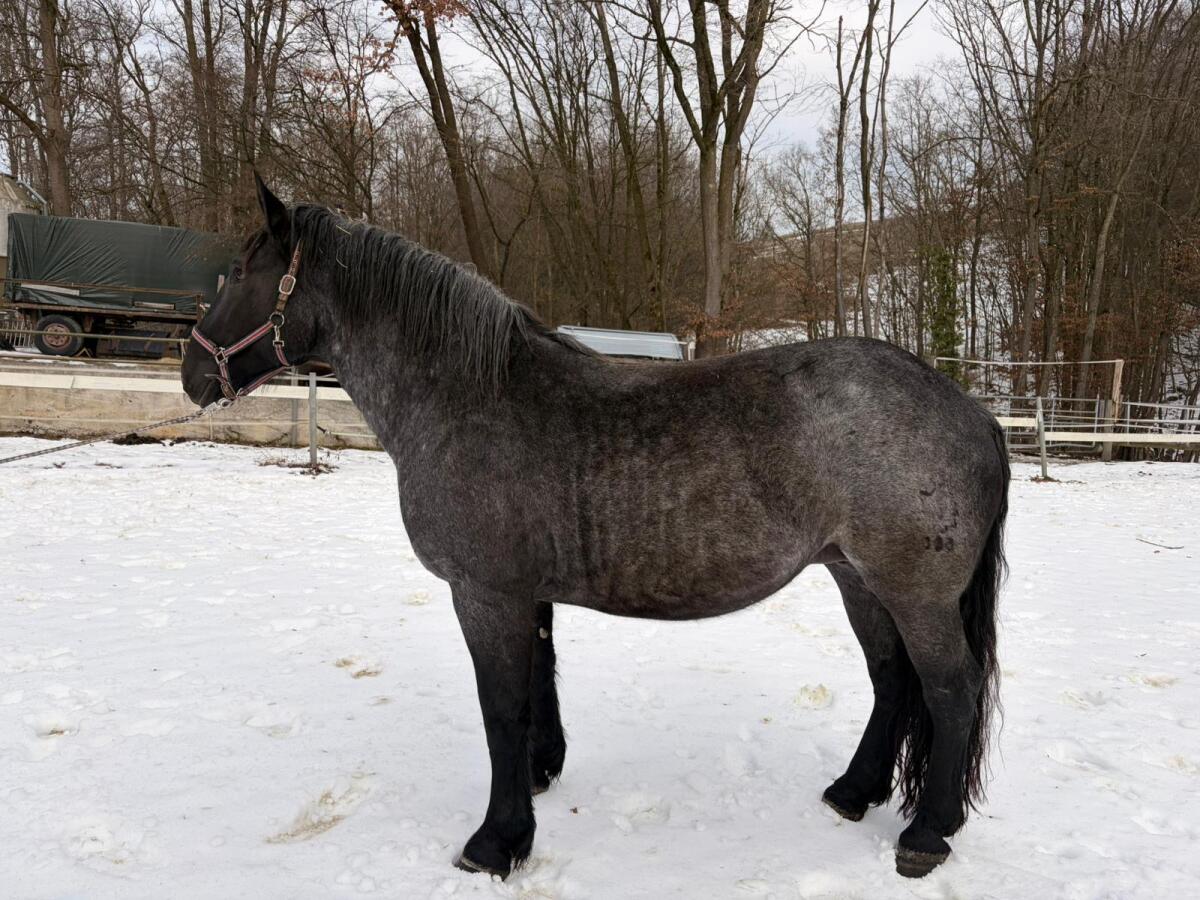 Bedingt reitbare Noriker Stute zu verkaufen, 4, 5 Jahre alt, ins Stutbuch eingetragen. Sie hat in beide Vorderbeine Probleme, orthopädischen Beschlag und ist nur im f