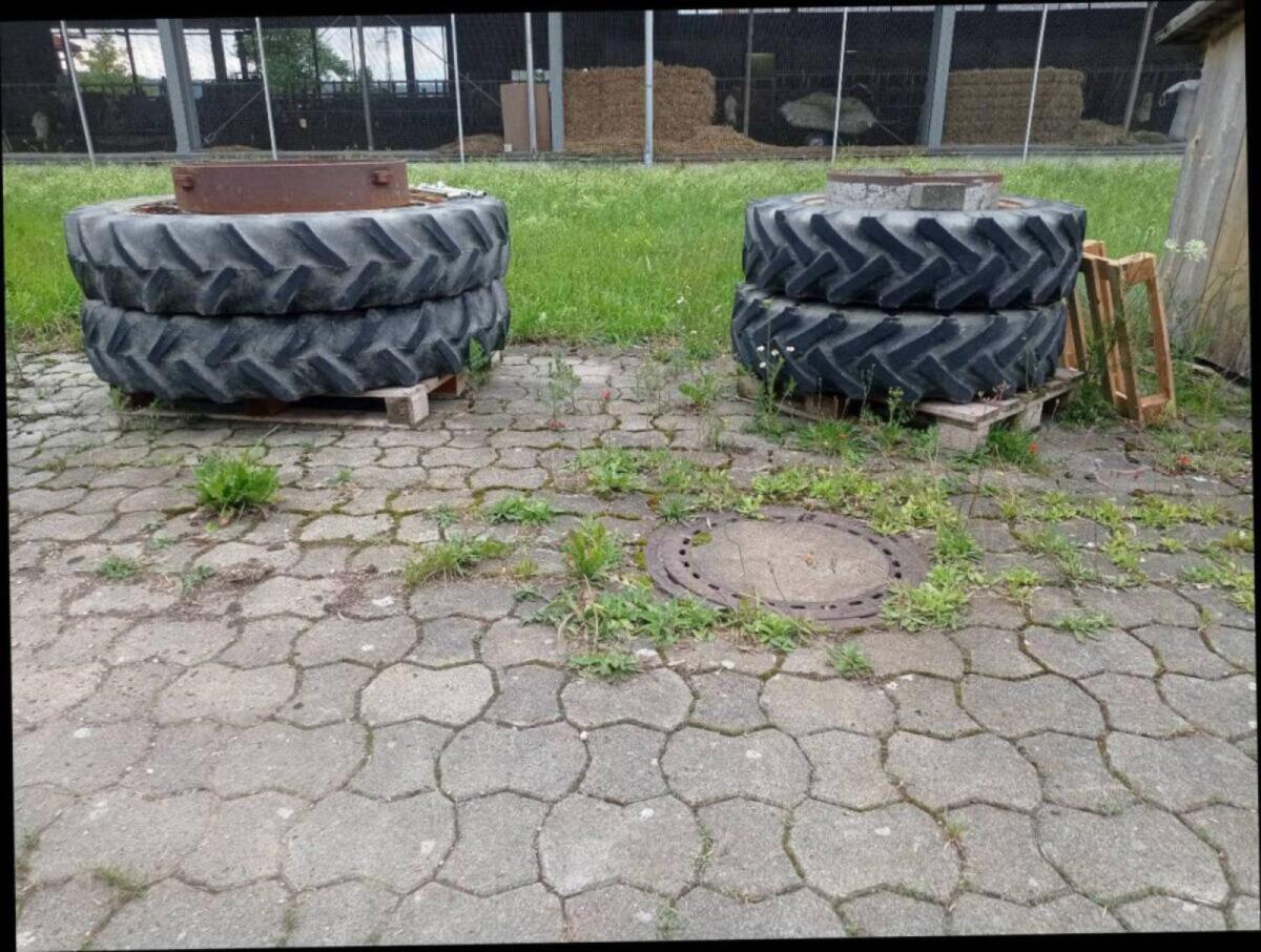 Verkaufe Kompletträder, montiert waren sie auf einem Agrostar 6.38. Die Reifengröße hinten ist 460/85R38 (18.4R38) und vorne 16.9R26. Der Reifen vorne li. hat einen