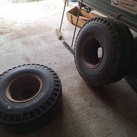 Verkaufe 2 Reifen von einem Güllefass, 1 Reifen ist auf einer Seite abgefahren, hat aber in der Mitte noch 2-2, 5 cm Profil, der andere Reifen ist vom Profil noch so