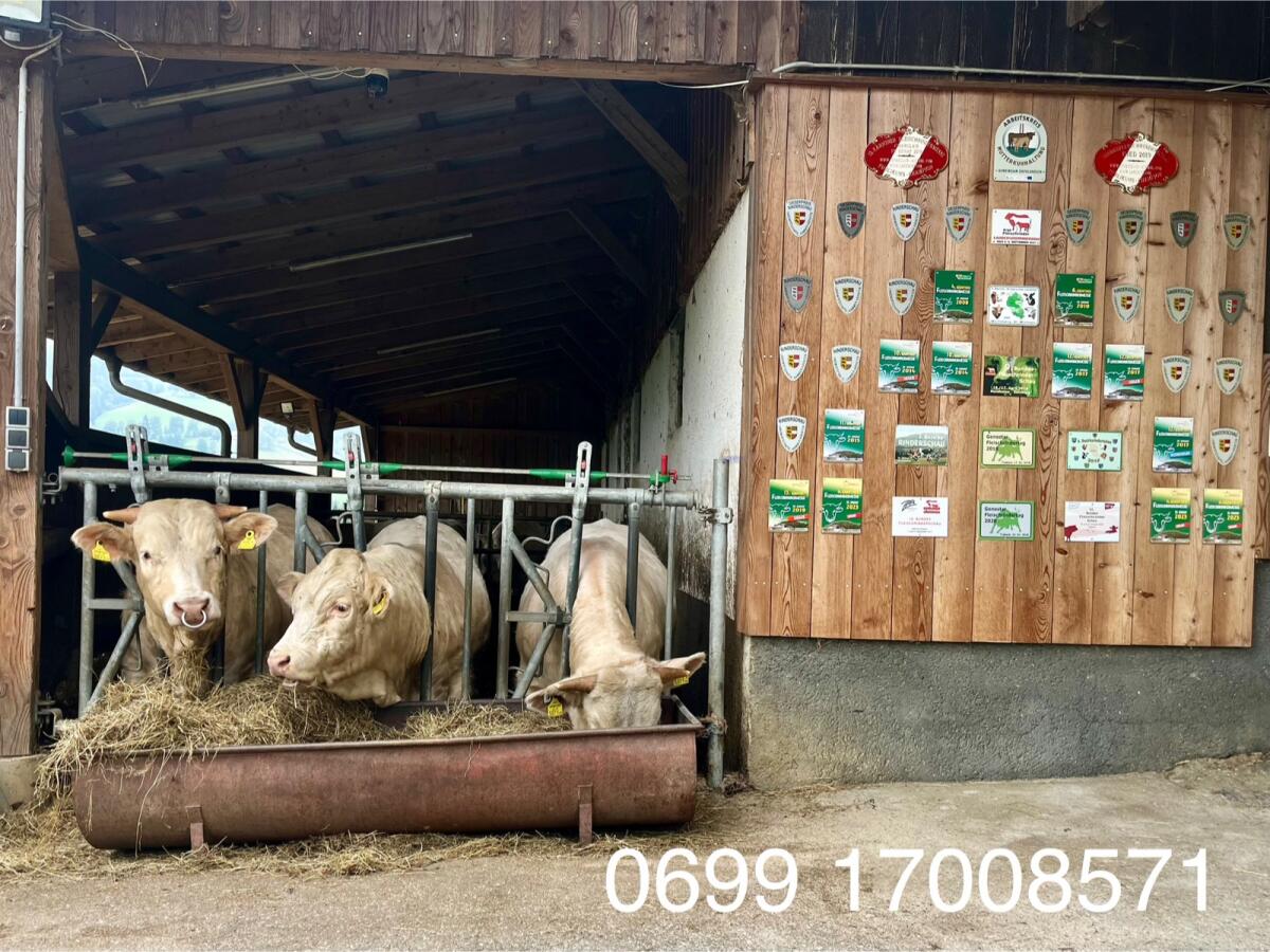 Verkaufe Charolais Sprungstiere, hornlos, reinerbig, geweidet. Bio-Betrieb mit Laufstallhaltung. Alter von 15 bis 22 Monaten. Zustellung österreichweit, Bayern und T