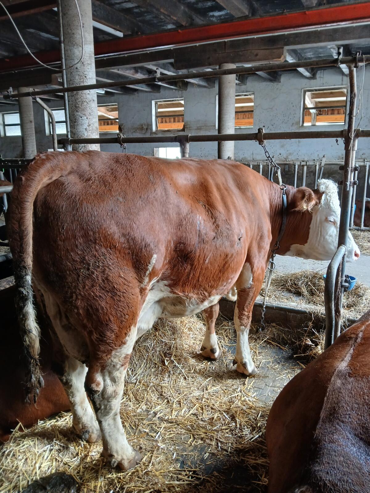 Aufzuchtbetrieb verkauft sehr brave Bio Fleckvieh Jungkuh/Mutterkuh, Zellzahl in Ordnung, sehr schönes Euter, sie ist 3-Strich, geweidet und gealpt. Zustellung mögli