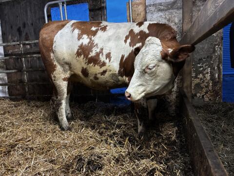 Erstlingskuh Fleckvieh mal Normanne, gek. 30.11.25, ca. 25 kg Milch, Melkbarkeit langsam, zu verkaufen. Rindermarkt Fleckvieh