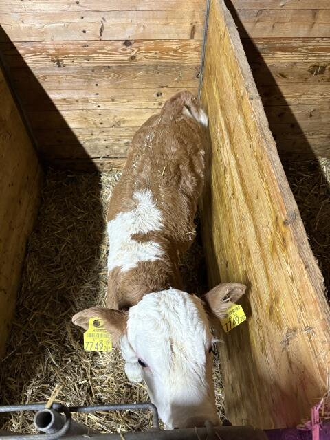 Verkaufe Charolais/HF Stierkalb, geb. 19.10.2025, dzt. 77 kg. Rindermarkt Charolais