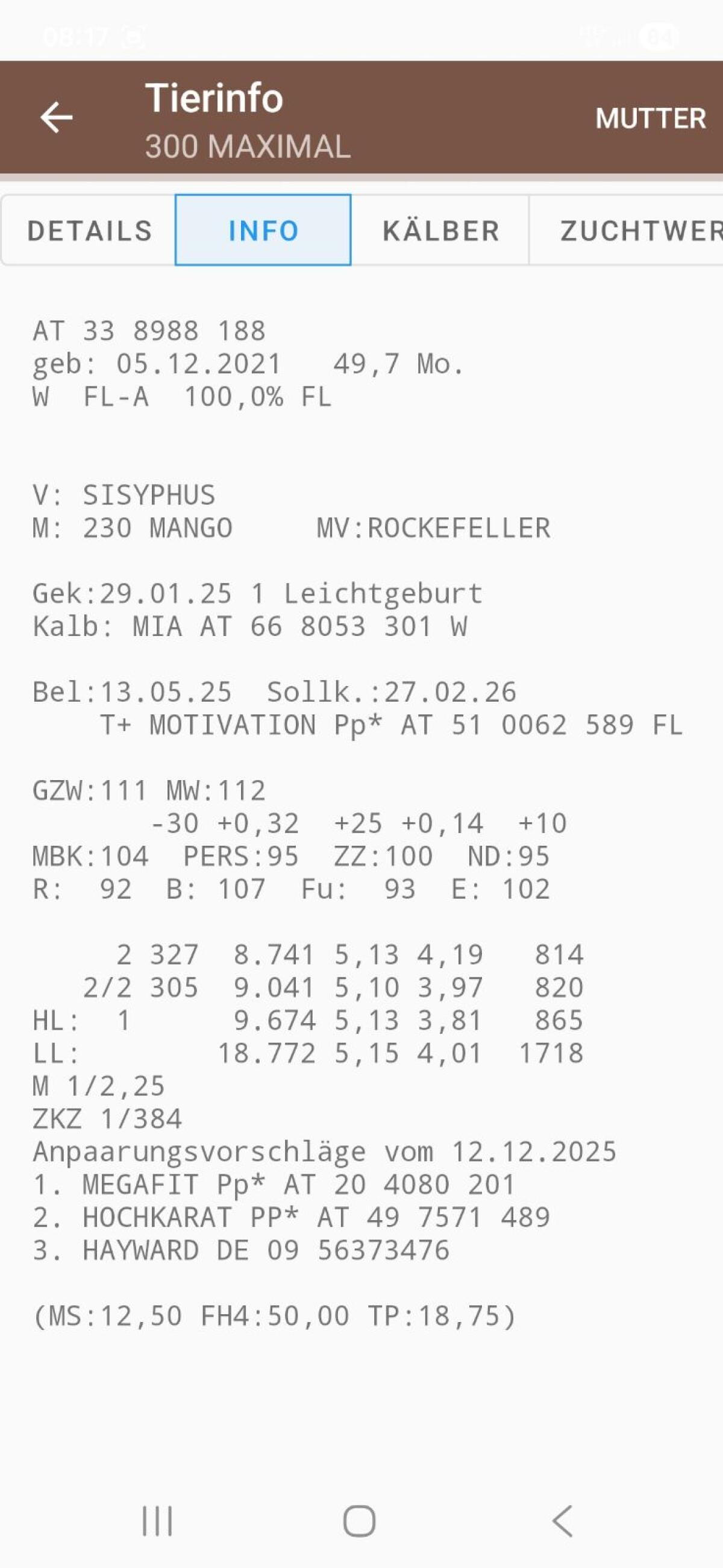 Geb.: 25.09.25, V.: Danka. Rindermarkt Jersey