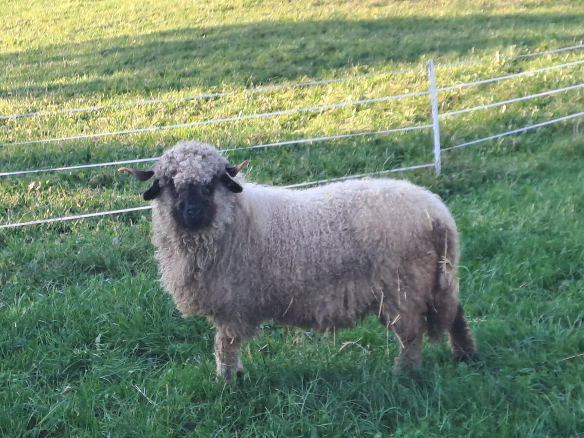 Unser Burli, geboren 3/2025, entwurmt, ohne Papiere, muss unsere Herde leider verlassen. Schafe Walliser Schwarznasenschafe